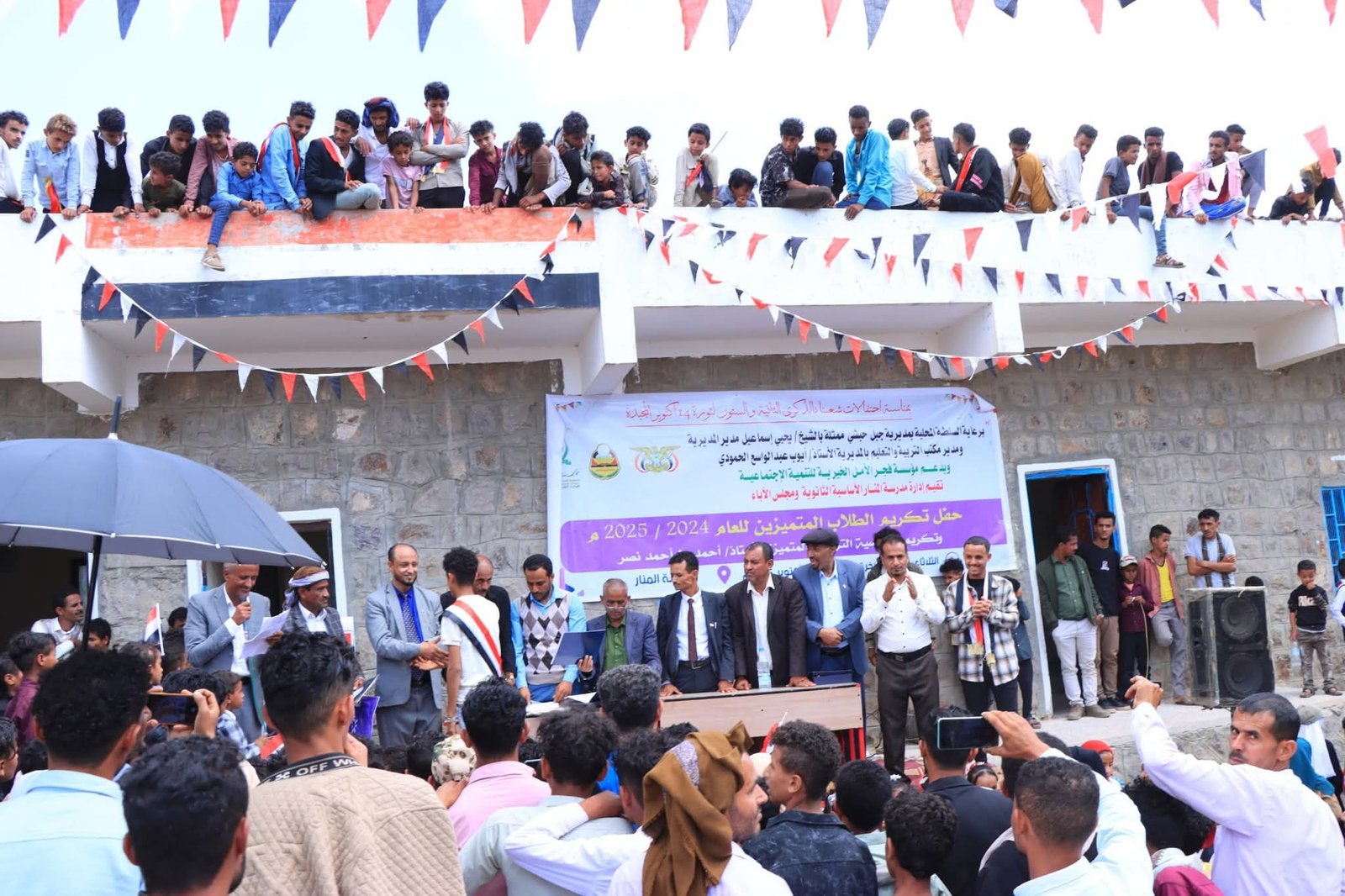 برعاية السلطة المحلية بمديرية جبل حبشي ومكتب التربية والتعليم بالمديرية وبدعم من مؤسسة فجر الأمل الخيرية للتنمية الإجتماعية أقامت مدرسة المنار بالحقل جبل حبشي ومجلس الاباء حفل تكريم أوائل الثانوية العامة الحاصلين على درجة إمتياز وكذلك بقية الاوائل في جميع الفصول الدراسبة وتكريم الشخصية التربوية المتميزة الاستاذ أحمد بن أحمد نصر المدير السابق للمدرسة بدرع المؤسسة تقديرا وعرفانا بجهوده التي بذلها في سبيل العملية التعليمية.اشكر ادارة المدرسة على جهودها وكذلك الشكر لكل المعلمين والمعلمات على جهودهم المبذولة وشكر خاص لكل من حضر وساهم في إنجاح هذا الحغلمبارك لجميع المكرمين ومن نجاح الى نجاح ان شاء الله